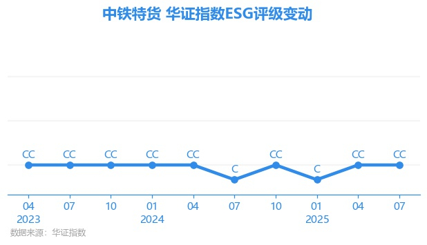 日前,华证指数公布了新一期(2025年7月31日)的ESG评级结果,中铁特货(001213.SZ)获得CC评级(华证指数评级为C起至AAA九档,C为最低档,AAA为其最高一级评级/AA为其第二档),上一期(2025年4月30日)ESG评级为CC。本期ESG评级在22家地面运输行业A股上市公司中排名第14(上一期排名第21)。