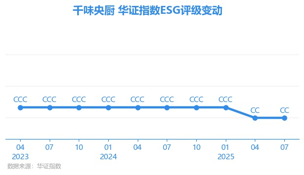日前,华证指数公布了新一期(2025年7月31日)的ESG评级结果,千味央厨(001215.SZ)获得CC评级(华证指数评级为C起至AAA九档,C为最低档,AAA为其最高一级评级/AA为其第二档),上一期(2025年4月30日)ESG评级为CC。本期ESG评级在156家食品行业A股上市公司中排名第107(上一期排名第114)。