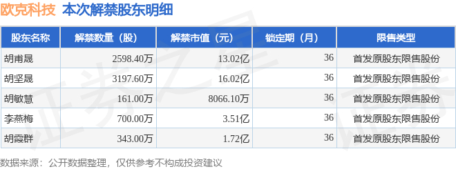 欧克科技(001223)7000万股限售股将于12月17日解禁,占总股本74.99%