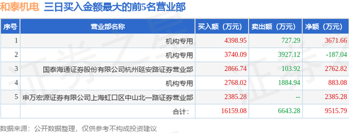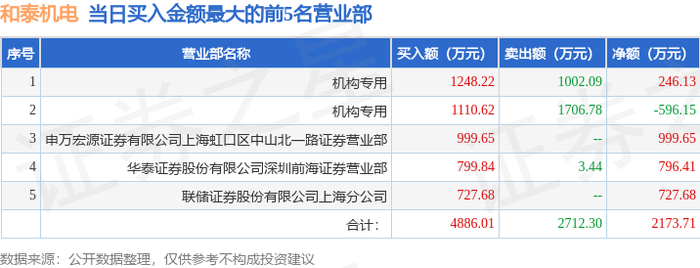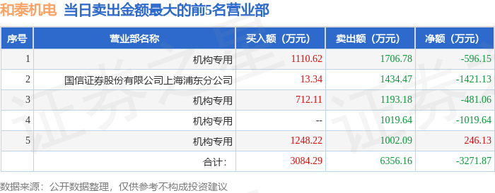 10月16日和泰机电(001225)龙虎榜数据:机构净卖出1850.73万元