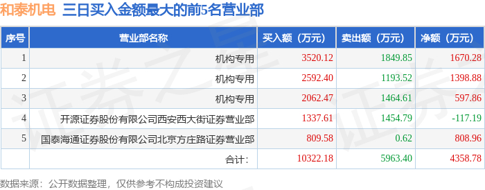 1月6日和泰机电(001225)龙虎榜数据:机构净买入3667.01万元(3日)