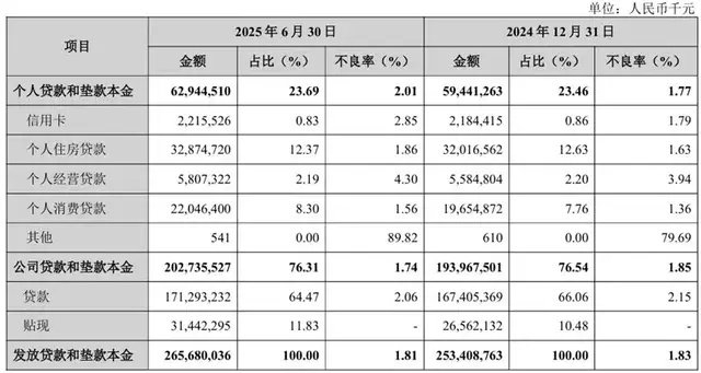 作为兰州银行贷款主力的公司类贷款(占总贷款比例76.31%),资产质量呈现改善趋势,当期不良贷款率1.74%,较2024年末下降0.11个百分点。