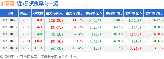 10月20日永泰运(001228)涨停分析:治理优化、实控人增持、业务协同驱动
