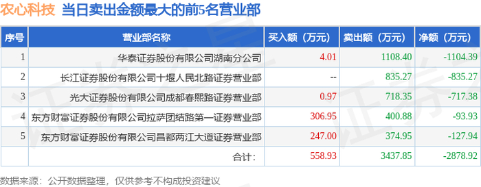 证券之星消息,沪深交易所2025年10月29日公布的交易公开信息显示,农心科技(001231)因日跌幅偏离值达到7%的前5只证券登上龙虎榜。此次是近5个交易日内第4次上榜。