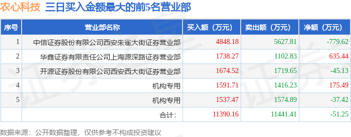1月6日农心科技(001231)龙虎榜数据:游资方新侠上榜
