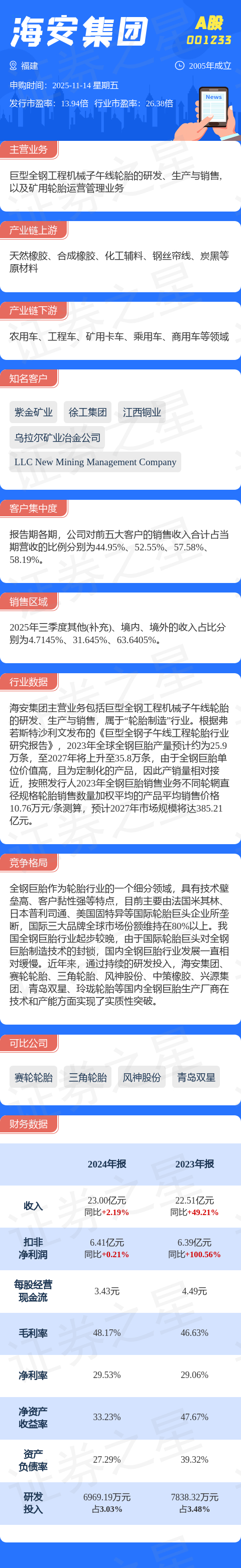 证券之星消息,海安集团11月14日网上申购,申购代码为001233,中签号公布日期为11月18日。该股概况请见下图: