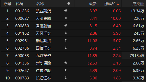 金融板块反复活跃 弘业期货、天茂集团双双涨停