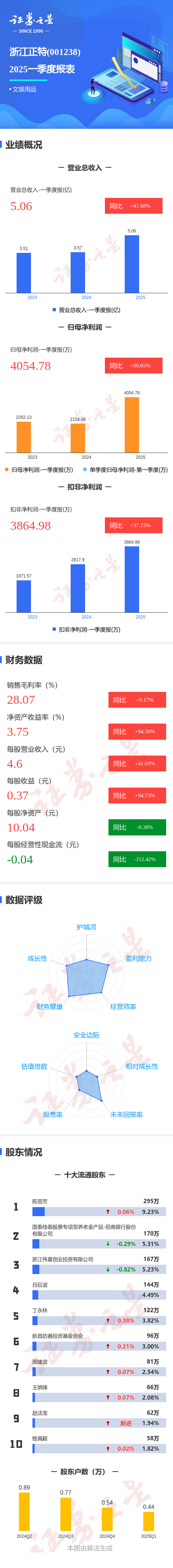 图解浙江正特一季报:第一季度单季净利润同比增90.86%