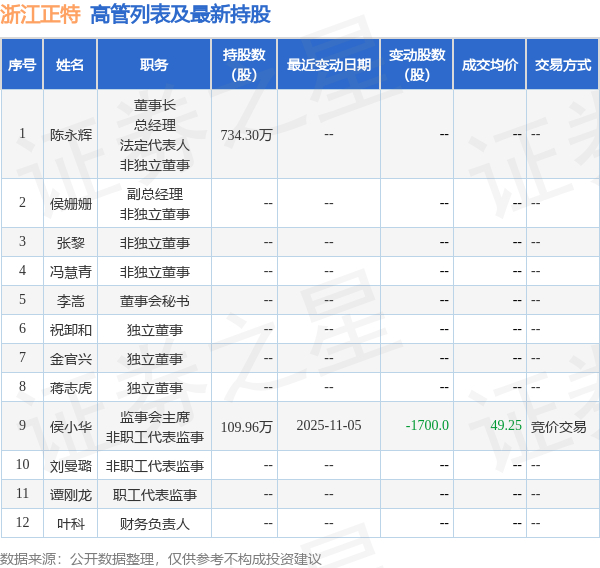 浙江正特近半年内的董监高及核心技术人员增减持详情如下: