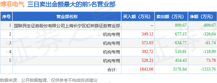 1月13日博菲电气(001255)龙虎榜数据:机构净卖出434.09万元(3日)