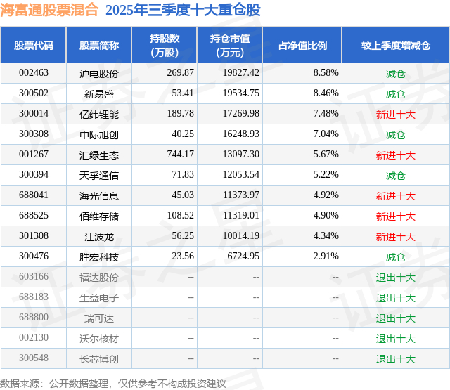 根据2025基金Q3季报公募基金重仓股数据,重仓该股的公募基金共13家,其中持有数量最多的公募基金为海富通基金的海富通股票混合。海富通股票混合目前规模为23.1亿元,最新净值1.5733(1月5日),较上一交易日上涨2.2%,近一年上涨106.71%。该公募基金现任基金经理为吕越超。吕越超在任的基金产品包括:海富通先进制造股票A,管理时间为2019年12月17日至今,期间收益率为61.64%;海富通科技创新混合A,管理时间为2020年3月10日至今,期间收益率为57.65%。