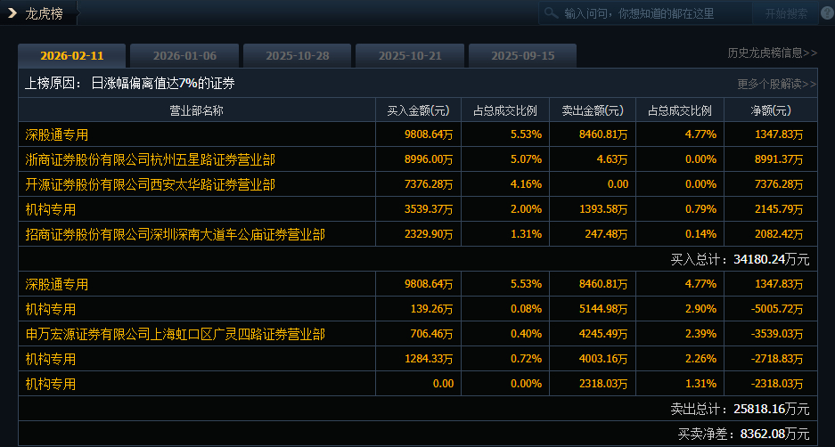 汇绿生态今日涨停,有3家机构专用席位净卖出1.00亿元