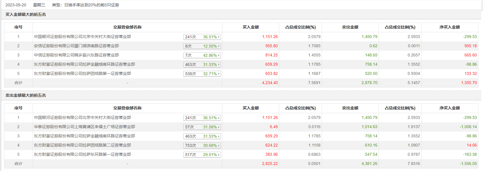 具体来看,中国银河证券北京中关村大街证券营业部、华泰证券上海黄浦区来福士广场证券营业部分别卖出1450.79万元、1014.63万元;中国银河证券北京中关村大街证券营业部、安信证券厦门湖滨南路证券营业部分别买入1151.26万元、955.80万元。