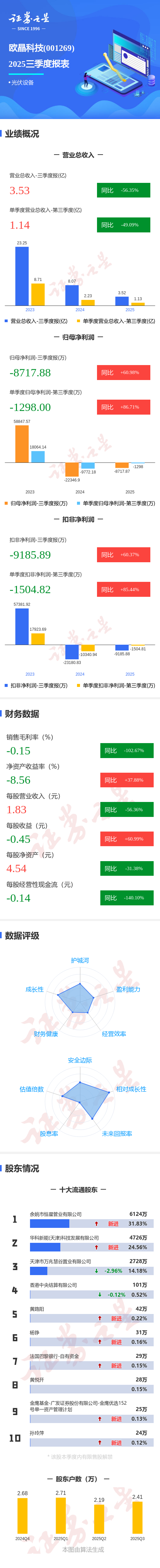 图解欧晶科技三季报:第三季度单季净利润同比增长86.72%