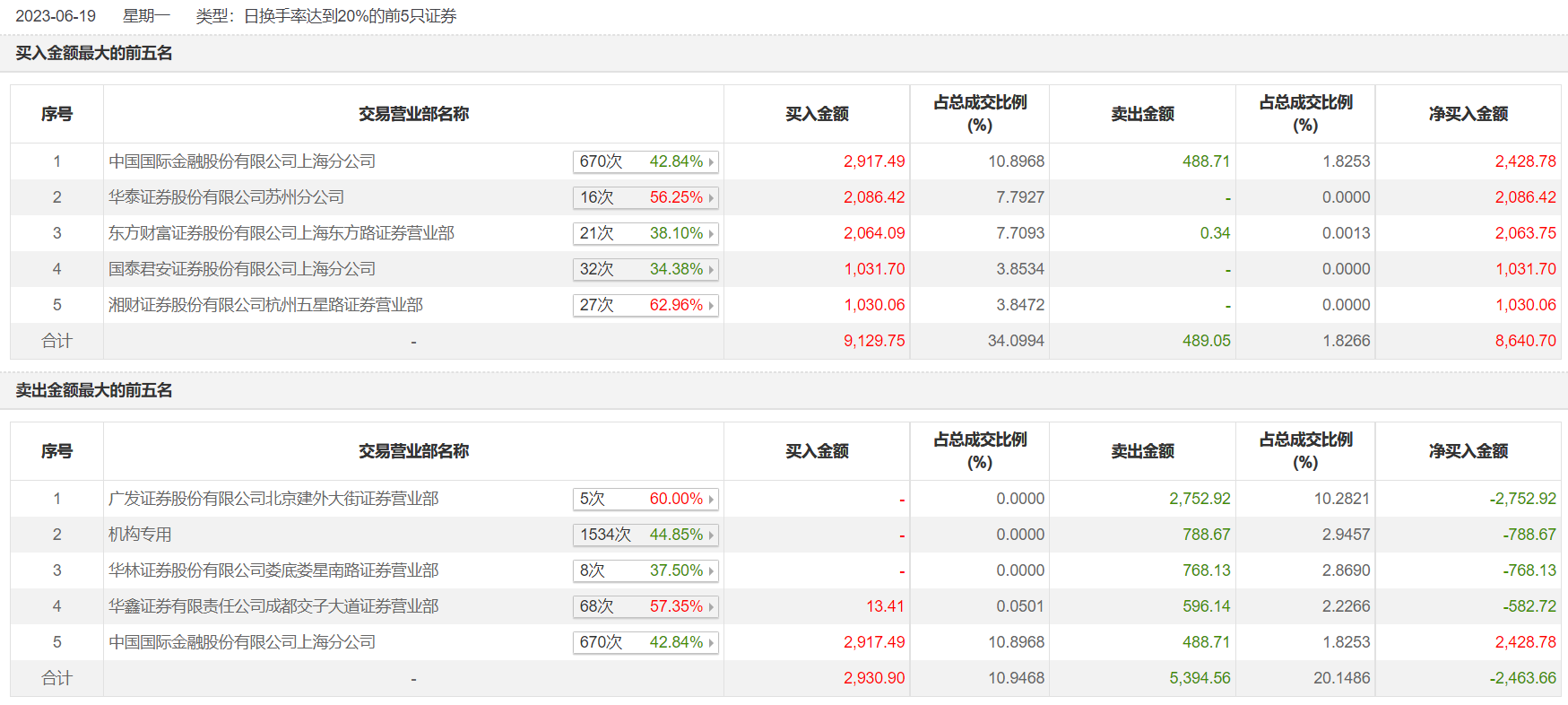 具体来看,机构合计净卖出788.67万元。此外,中国国际金融上海分公司、华泰证券苏州分公司分别买入2917.49万元、2086.42万元;广发证券北京建外大街证券营业部、华林证券娄底娄星南路证券营业部分别卖出2752.92万元、768.13万元。