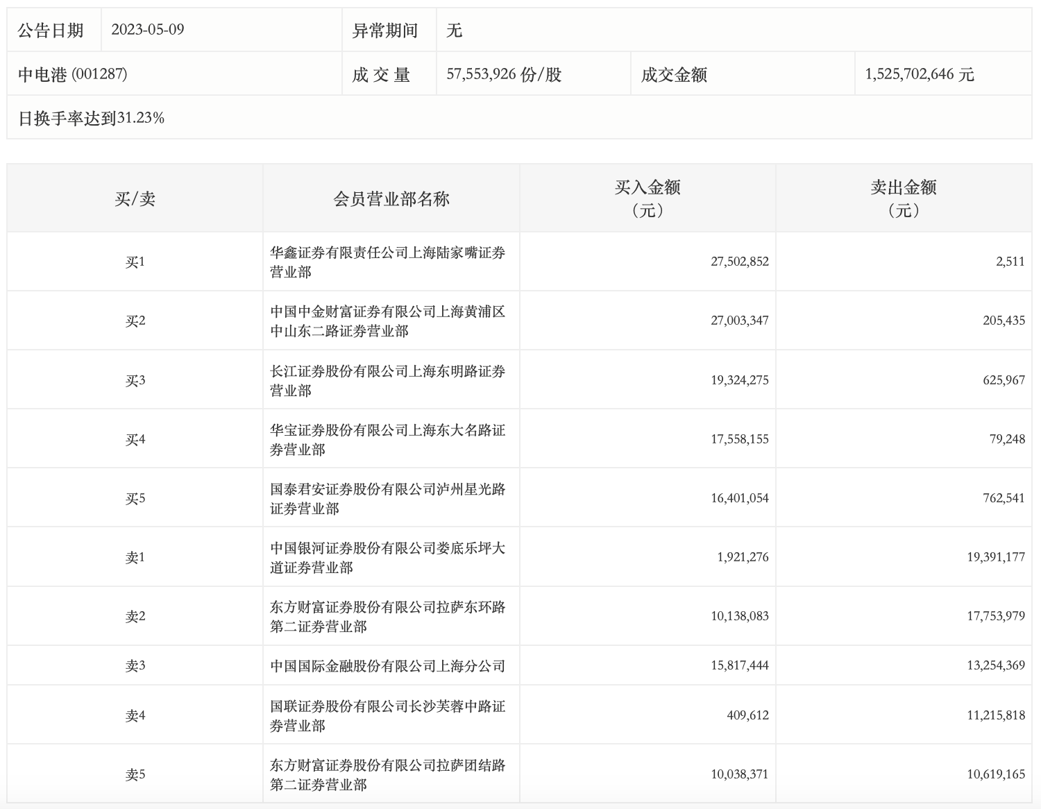 5月9日,中电港今日涨停,龙虎榜数据显示,上榜营业部席位全天成交2.2亿元,占当日总成交金额比例为14.42%。其中,买入金额为1.46亿元,卖出金额为7391.02万元,合计净买入7220.43万元。
