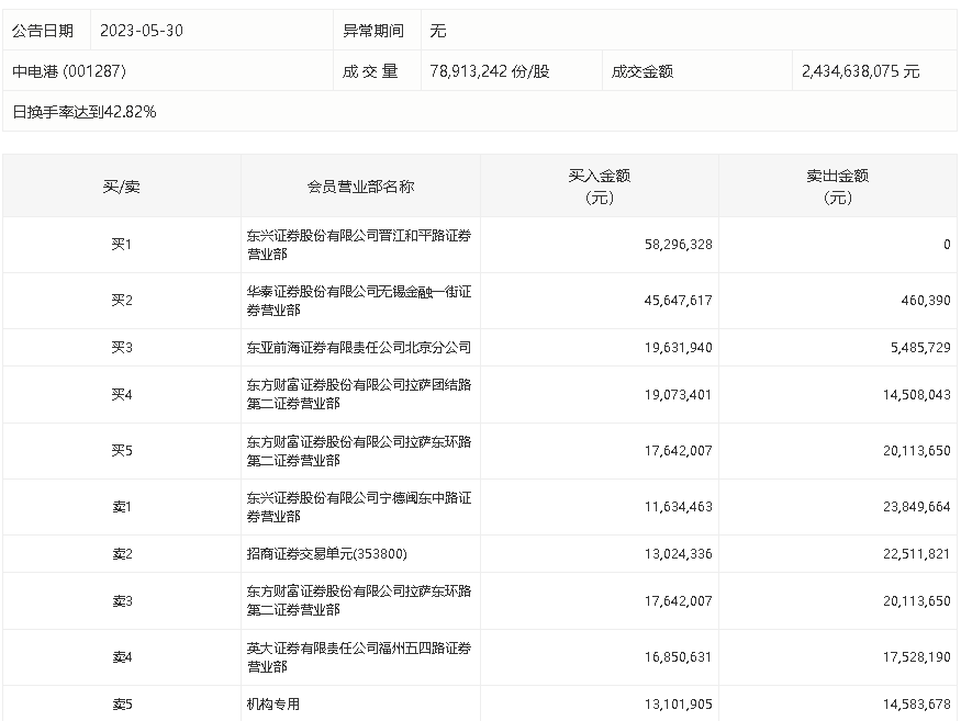 5月30日,中电港今日涨6.68%,龙虎榜数据显示,上榜营业部席位全天成交3.34亿元,占当日总成交金额比例为13.72%。其中,买入金额为2.15亿元,卖出金额为1.19亿元,合计净买入9586.15万元。