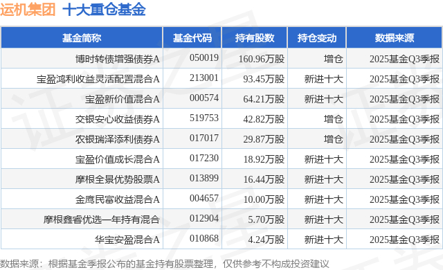 根据2025基金Q3季报公募基金重仓股数据,重仓该股的公募基金共10家,其中持有数量最多的公募基金为博时基金的博时转债增强债券A。博时转债增强债券A目前规模为12.13亿元,最新净值2.5517(1月12日),较上一交易日上涨1.88%,近一年上涨51.17%。该公募基金现任基金经理为过钧 高晖。过钧在任的基金产品包括:博时信用债券A/B,管理时间为2009年6月10日至今,期间收益率为321.27%;博时新收益A,管理时间为2016年2月29日至今,期间收益率为246.06%;博时双季鑫6个月持有混合A,管理时间为2021年1月20日至今,期间收益率为12.2%;博时浦惠一年持有期混合A,管理时间为2022年2月17日至今,期间收益率为27.5%。高晖在任的基金产品包括:博时稳健回报债券(LOF)C,管理时间为2023年10月20日至今,期间收益率为11.91%;博时可转债ETF,管理时间为2023年10月20日至今,期间收益率为30.19%。