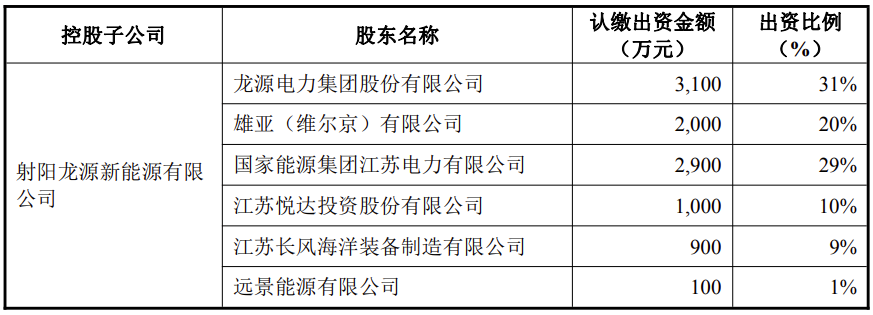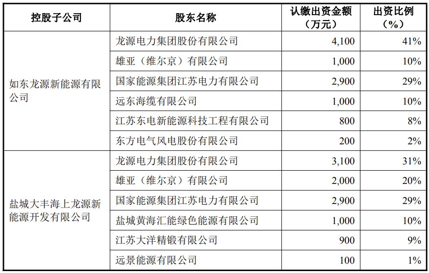 龙源电力表示,本次设立控股子公司,旨在充分利用和调动国能江苏电力以及各参股方在当地的资源优势,从而进一步发挥本公司在海上风电领域的专业特长和技术优势,实现强强联合,共同开发建设和运营江苏如东H16#15万千瓦风电项目、大丰H20#40万千瓦海上风电项目、射阳海上南区H7#75万千瓦风电项目。