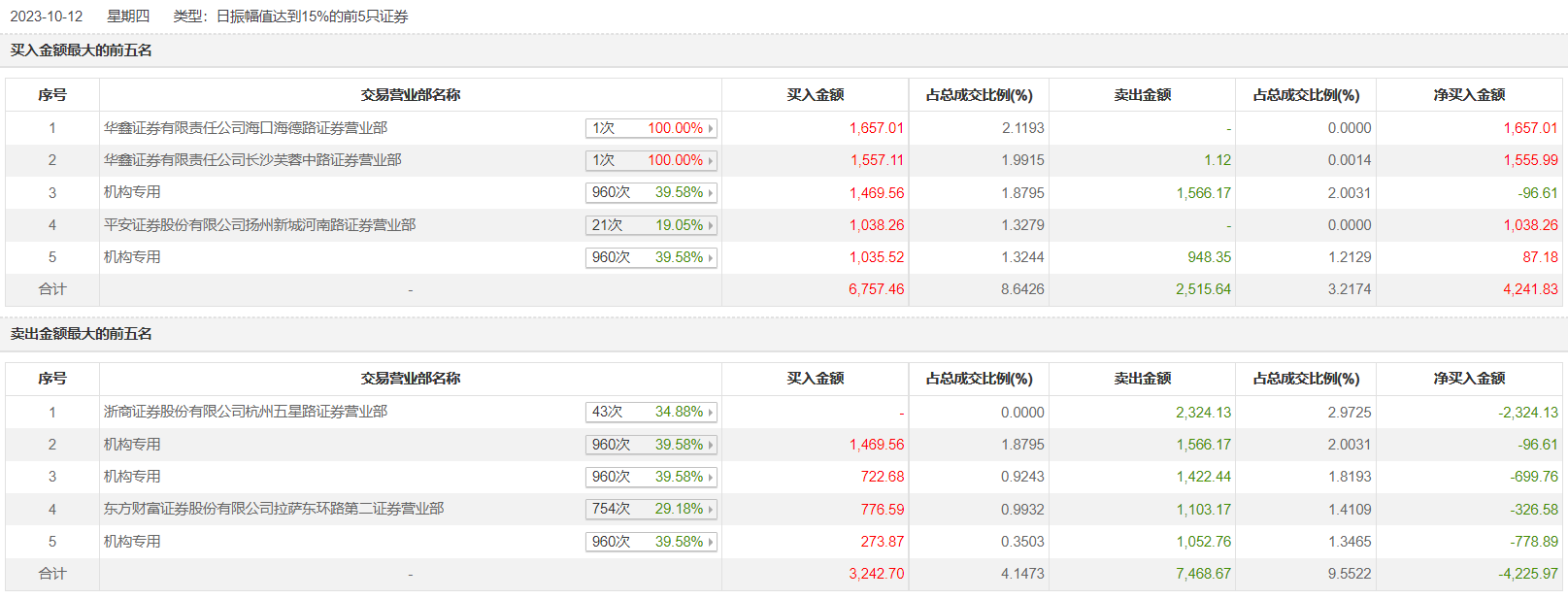 好上好10月12日跌3.46%,全天换手率达64.34%,振幅达14.05%。龙虎榜数据显示,营业部席位合计净买入112.46万元。其中,机构买入3501.64万元,卖出4989.72万元,合计净卖出1488.08万元。此外,浙商证券杭州五星路证券营业部、东方财富证券拉萨东环路第二证券营业部分别卖出2324.13万元、1103.17万元;炒股养家(华鑫证券海口海德路证券营业部)、华鑫证券长沙芙蓉中路证券营业部分别买入1657.01万元、1557.11万元。