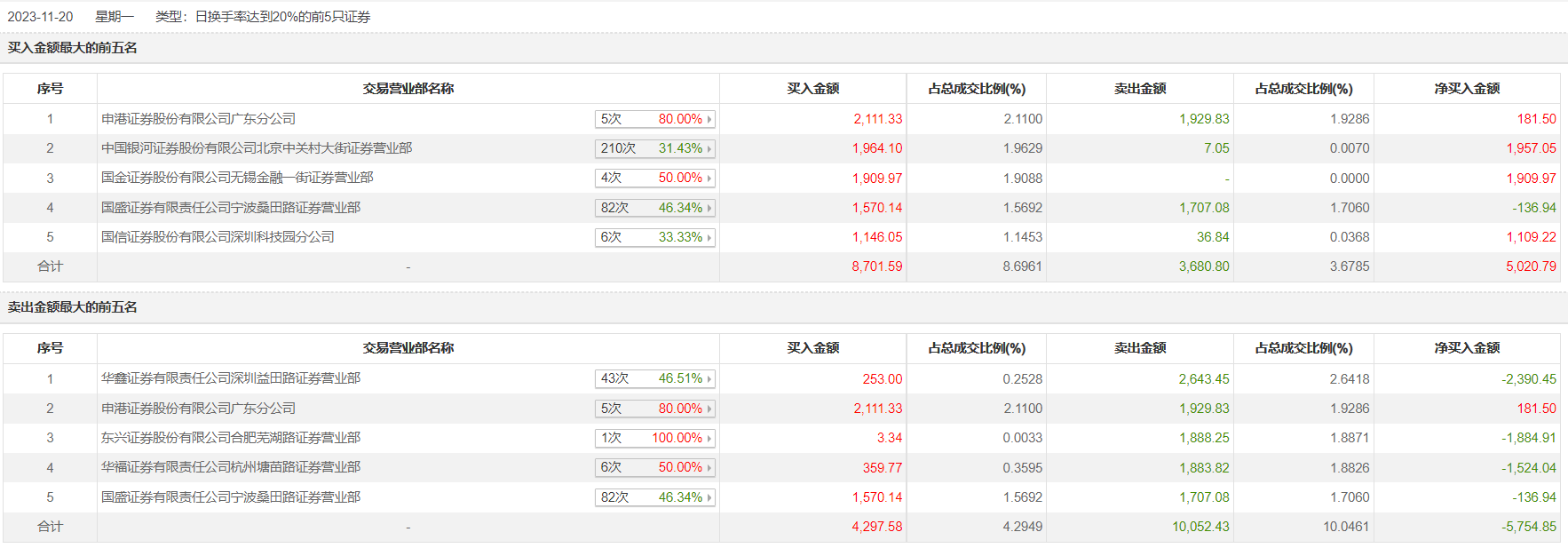 具体来看,知名游资现身龙虎榜,宁波桑田路(国盛证券有限责任公司宁波桑田路证券营业部)净卖出136.94万元。此外,申港证券广东分公司、中国银河证券北京中关村大街证券营业部分别买入2111.33万元、1964.10万元;华鑫证券深圳益田路证券营业部、申港证券广东分公司分别卖出2643.45万元、1929.83万元。