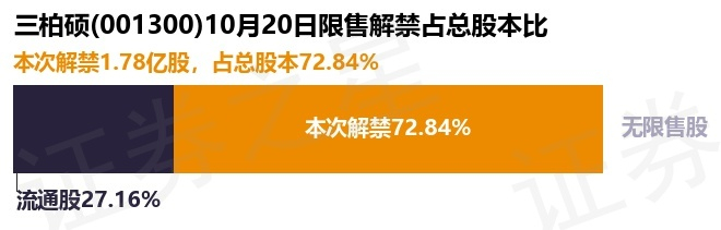三柏硕(001300)1.78亿股限售股将于10月20日解禁,占总股本72.84%
