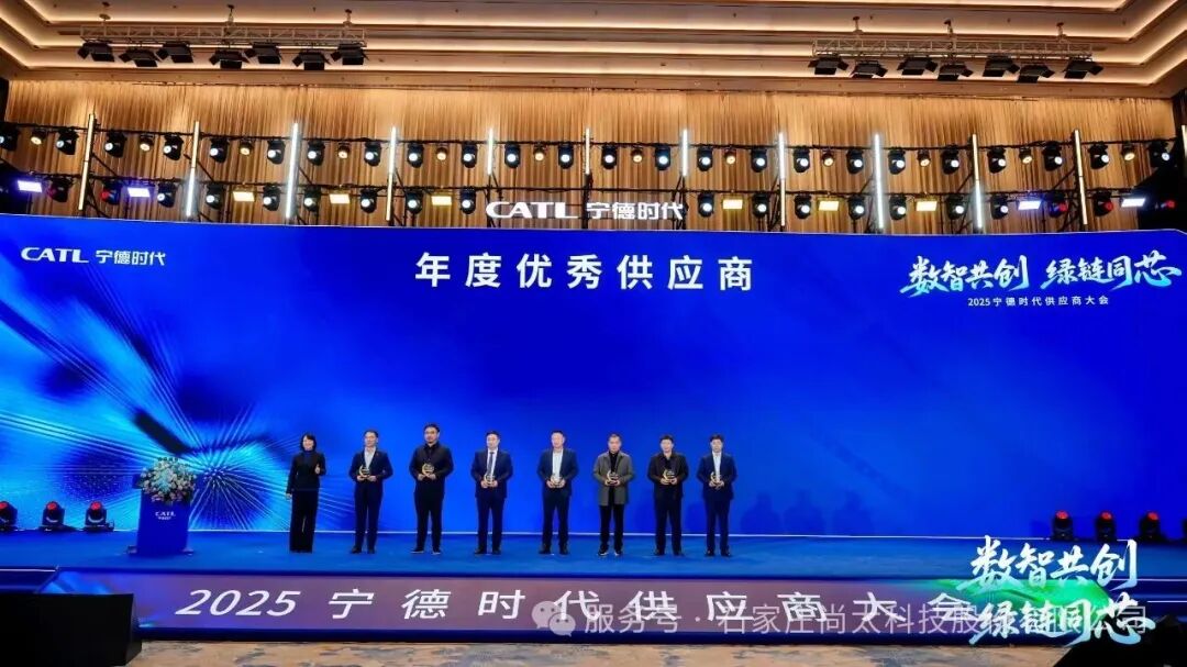 为表彰在过去一年中为宁德时代发展作出突出贡献的合作伙伴,大会颁发“年度优秀供应商”奖项。石家庄尚太科技股份有限公司凭借在锂电负极材料领域卓越的产品质量、稳定的供应保障和深度的协同合作,再度荣获宁德时代“2025年度优秀供应商”荣誉。