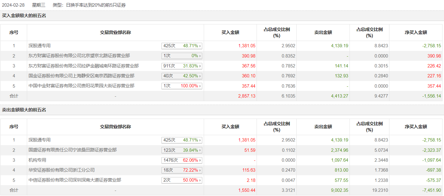 夏厦精密2月28日跌4.73%,龙虎榜数据显示,上榜营业部席位全天成交1.23亿元,占当日总成交金额比例为26.28%。其中,买入金额为3026.53万元,卖出金额为9276.42万元,合计净卖出6249.89万元。