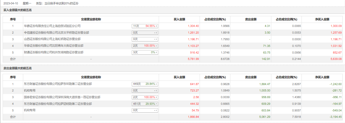 4月10日,德明利今日涨停,龙虎榜数据显示,上榜营业部席位全天成交1.29亿元,占当日总成交金额比例为19.28%。其中,买入金额为7648.83万元,卖出金额为5204.19万元,合计净买入2444.63万元。具体来看,机构买入778.07万元,卖出1608.84万元,合计净卖出830.77万元。此外,华鑫证券上海自贸试验区分公司、中信建投证券北京太平桥路证券营业部分别买入1304.40万元、1261.20万元;东方财富证券拉萨东环路第二证券营业部、国泰君安证券深圳深南大道京基一百证券营业部分别卖出1884.47万元、958.69万元。