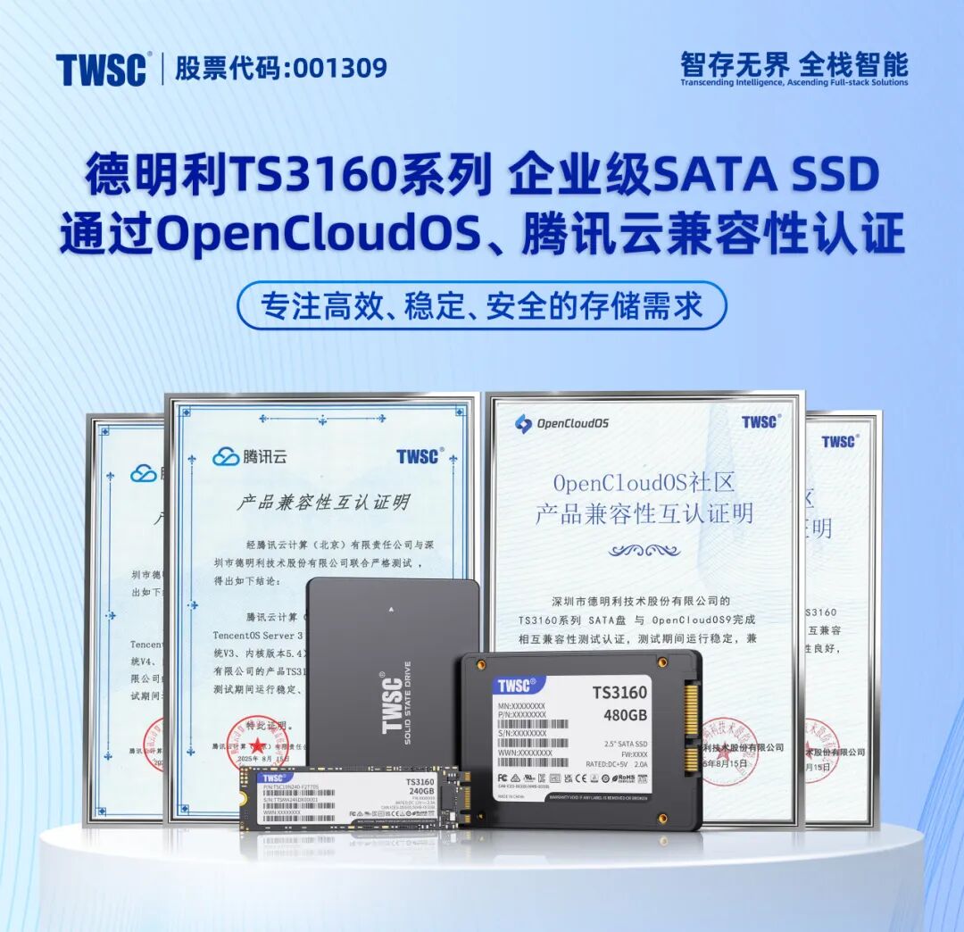 存储作为基础硬件,对系统性能、稳定性与兼容性具有关键作用。德明利TS3160系列企业级SATA SSD已与OpenCloudOS、腾讯云完成技术兼容互认证。