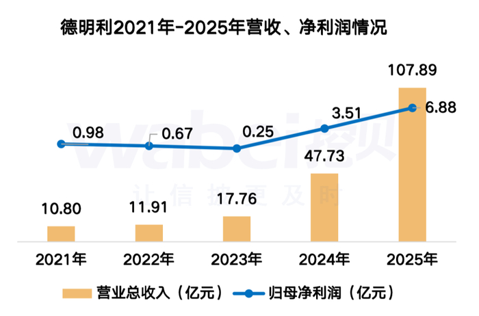 挖贝网 3月5日消息,德明利(001309)于近日披露2025年度年度报告,公司2025年实现营业收入107.89亿元,同比增长126.07%;实现归母净利润6.88亿元,同比增长96.35%。