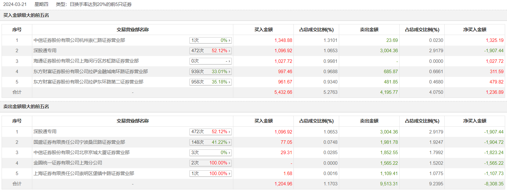 具体来看,知名游资现身龙虎榜,中信证券杭州崇仁路证券营业部、深股通专用分别买入1348.88万元、1096.92万元;深股通专用、宁波桑田路(国盛证券宁波桑田路证券营业部)分别卖出3004.36万元、1981.78万元。