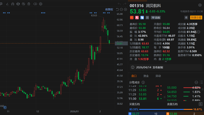 A股异动丨股东拟减持,润贝航科续跌5.33%,4日累计回撤近15%