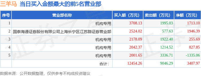 12月19日三羊马(001317)龙虎榜数据:游资章盟主上榜