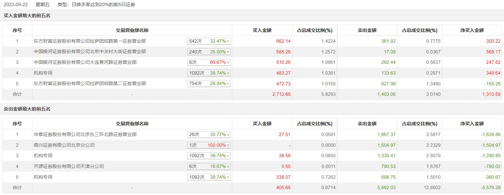 具体来看,机构买入860.9万元,卖出2162.79万元,合计净卖出1301.89万元。此外,华泰证券北京东三环北路证券营业部、甬兴证券有限公司北京分公司分别卖出1667.37万元、1504.97万元;东方财富证券拉萨团结路第一证券营业部、中国银河证券北京中关村大街证券营业部分别买入662.14万元、585.26万元。