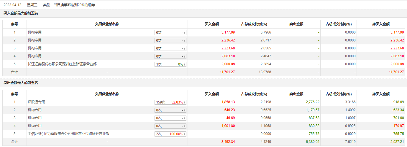 具体来看,机构买入1.13亿元,卖出2848.08万元,合计净买入8447.82万元。此外,长江证券深圳红荔路证券营业部、深股通专用分别买入2000.08万元、1858.13万元;深股通专用、中信证券(山东)郑州农业东路证券营业部分别卖出2776.22万元、755.75万元。