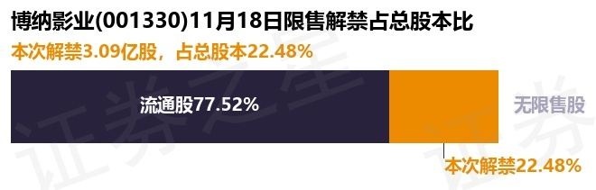 博纳影业(001330)3.09亿股限售股将于11月18日解禁,占总股本22.48%