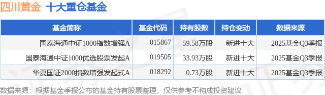 11月19日四川黄金涨5.70%,国泰海通中证1000指数增强A基金重仓该股