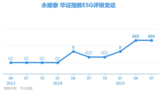 日前,华证指数公布了新一期(2025年7月31日)的ESG评级结果,永顺泰(001338.SZ)获得BBB评级(华证指数评级为C起至AAA九档,C为最低档,AAA为其最高一级评级/AA为其第二档),上一期(2025年4月30日)ESG评级为BBB。本期ESG评级在50家饮料行业A股上市公司中排名第21(上一期排名第20)。