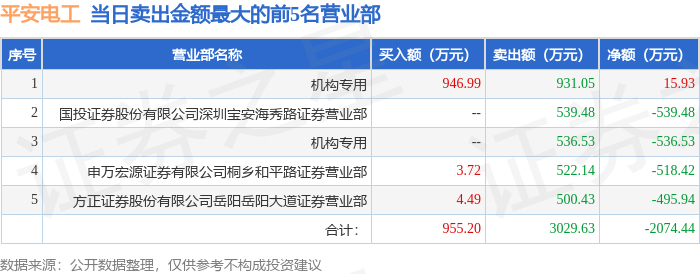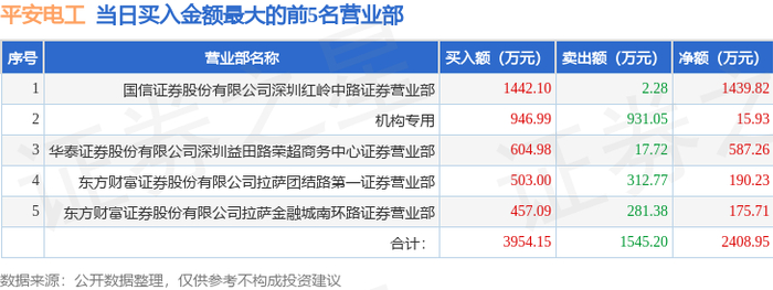 12月25日平安电工(001359)龙虎榜数据:游资徐留胜上榜