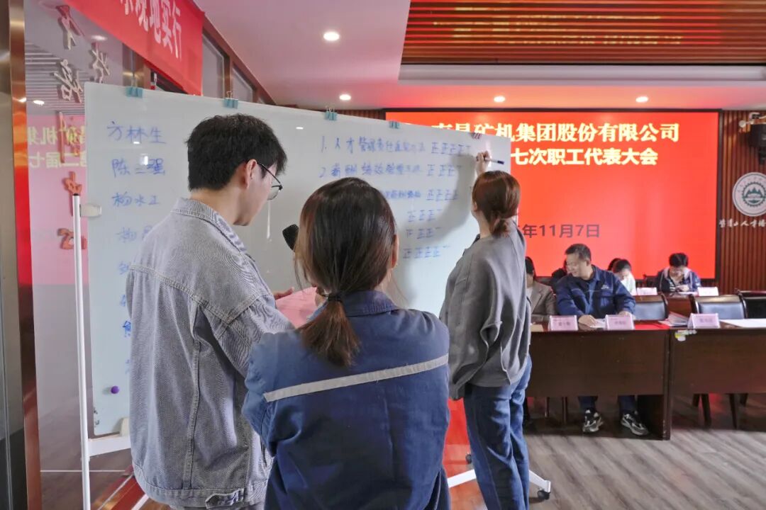11月7日,南昌矿机集团股份有限公司(以下简称“南矿集团”)召开二届七次职工代表大会和二届四次工会会员代表大会。南矿集团董事长、总裁李顺山出席大会并发表致辞,党建指导员詹水发参会。