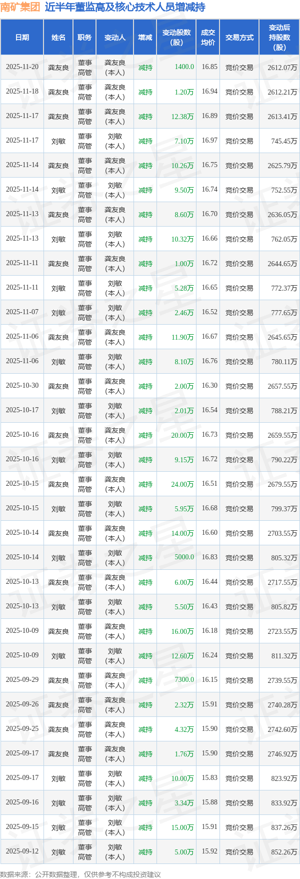 南矿集团:11月20日高管龚友良减持股份合计1400股