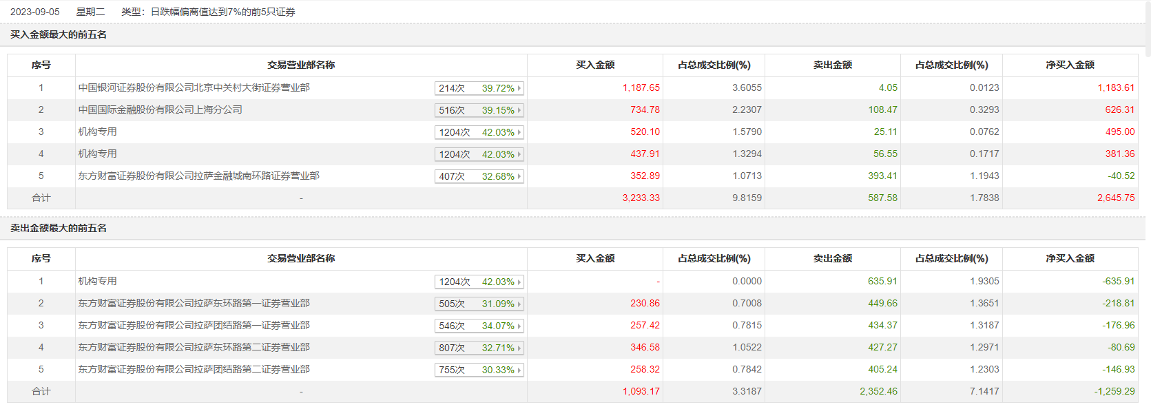 具体来看,机构买入958.01万元,卖出717.57万元,合计净买入240.44万元。此外,东方财富证券拉萨东环路第一证券营业部、东方财富证券拉萨团结路第一证券营业部分别卖出449.66万元、434.37万元;中国银河证券北京中关村大街证券营业部、中国国际金融上海分公司分别买入1187.65万元、734.78万元。