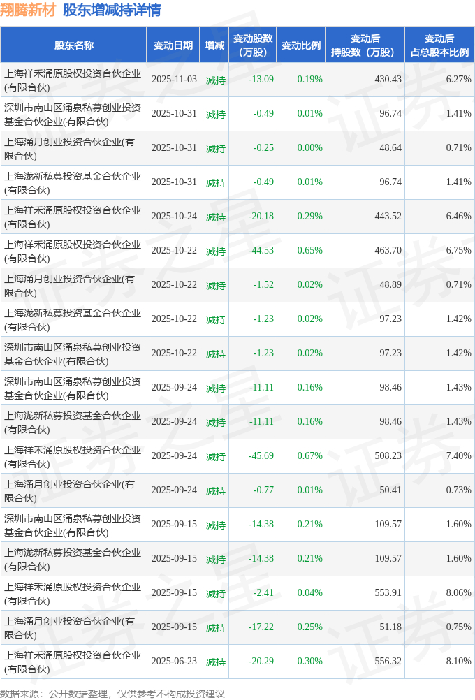 该股近半年内有股东持股变动,合计净减持220.39万股,股东增减持明细如下表: