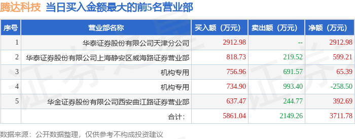 证券之星消息,沪深交易所2025年10月16日公布的交易公开信息显示,腾达科技(001379)因日换手率达到20%的前5只证券登上龙虎榜。此次是近5个交易日内第1次上榜。