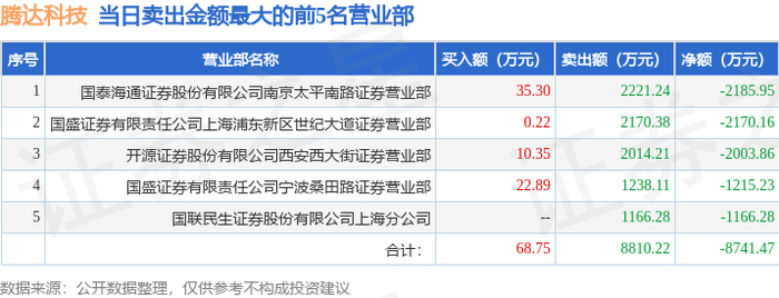 从龙虎榜公布的当日买卖数据来看,机构合计净卖出193.12万元。作手新一、宁波桑田路等知名游资榜上有名。(知名游资作手新一一般指国泰海通证券股份有限公司南京太平南路证券营业部席位、知名游资宁波桑田路一般指国盛证券有限责任公司宁波桑田路证券营业部席位,根据市场资料整理,仅供参考)