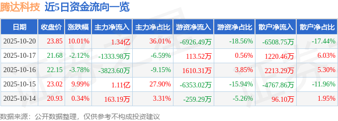 10月20日的资金流向数据方面,主力资金净流入1.34亿元,占总成交额36.01%,游资资金净流出6926.49万元,占总成交额18.56%,散户资金净流出6508.75万元,占总成交额17.44%。