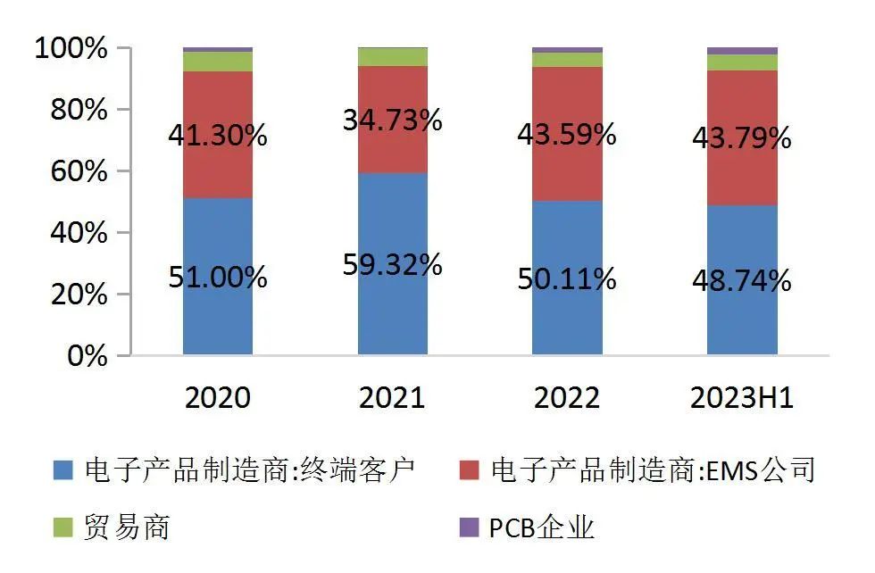 资料来源:wind,山西证券研究所从产品销售情况来看,公司产品主要通过外销的方式供给终端客户或EMS等电子产品制造商,但大部分仍在中国大陆进行组装加工。公司主要采用直销的销售模式,客户主要为电子产品制造商(包括终端客户及EMS公司),并且外销占比较高,2020-2023H1外销占比分别为75.17%、75.96%、82.67%、81.86%。其中,外销主要以境内保税园区或保税工厂、中国香港为主,2023H1销往境内保税园区或保税工厂、中国香港的收入占比分别为46.72%、18.42%。根据公司销售部门对于客户订单的统计,抵达香港的货物中又有较大比例流向客户的中国境内工厂,因此公司外销产品大部分在中国大陆继续组装加工。