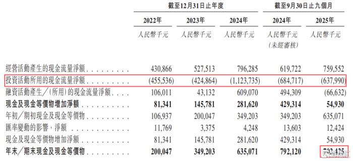 过去几年,广合科技持续录得投资活动现金净流出,报告期内累计约26.42亿元。另外,公司2024年至2025年度累计派息3.1亿元。截至2025年9月底,公司账上现金及现金等价物约7.02亿元。