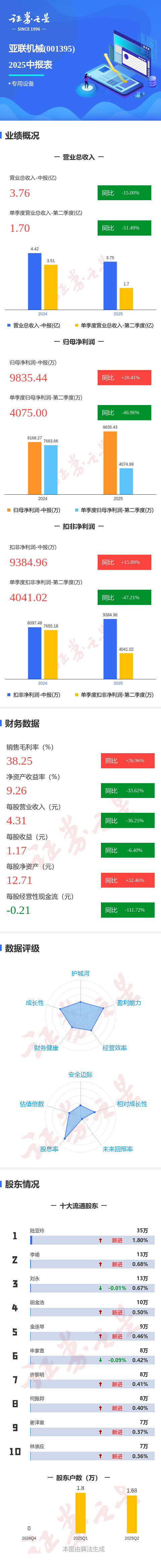 图解亚联机械中报:第二季度单季净利润同比下降46.97%